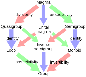 Magma: a ∈ S, b ∈ S --> a·b ∈ S