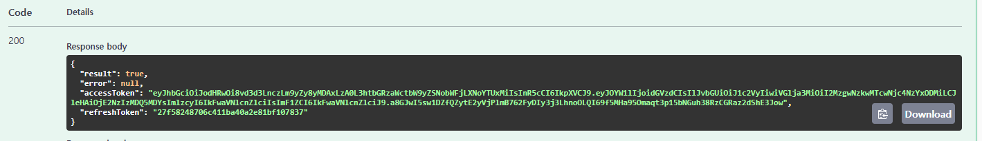 swagger 를 통해 Refresh 를 실행 시키면 accessToken 과 refreshToken 이 update 되는것을 확인할 수 있다.