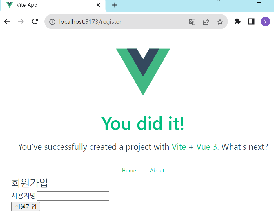 성공하면 자동으로 Login.vue 로 이동하게 될것이다.