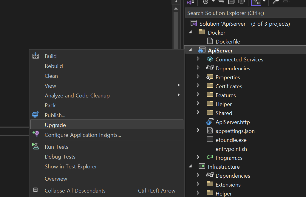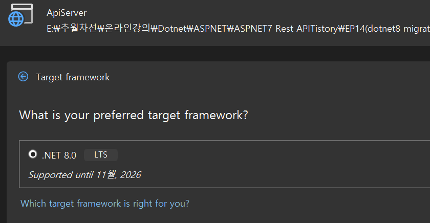 완료되면 dotnet 8 으로 project 가 변경되어 있을 것이다.