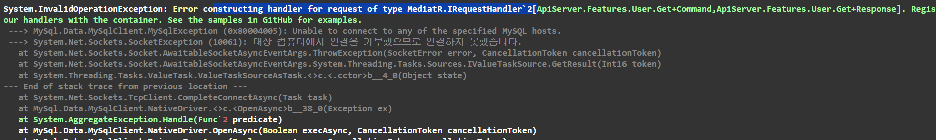 아무래도 mediatR 에서 error 를 표시하는 부분에서 뭔가 오류가 있는것 같은 느낌이다.