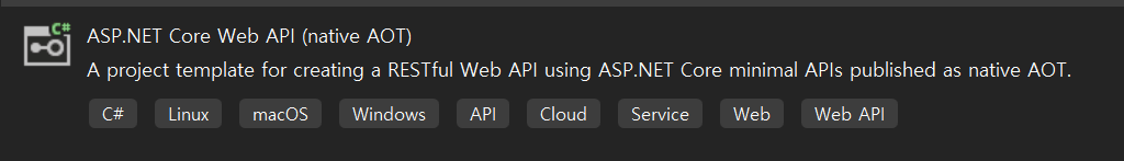 visual studio 2022 에서 project template 에서 아래 그림에 있는 template 을 선택하자